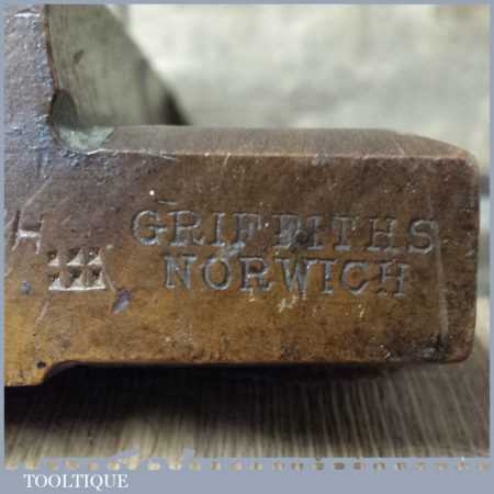 Antique Griffiths of Norwich No: 16 beechwood Hollow moulding plane in good used condition.