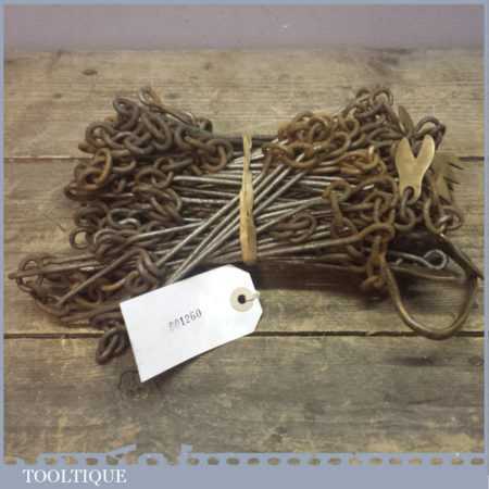 Antique 66ft Gunters chain with brass tags and handles in what looks to good overall condition although somewhat rusty.
