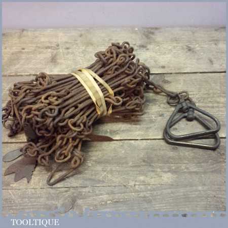 Antique 66 ft Gunters Chain, Land Surveyor’s antique land distance measuring Tool, this is a nice early one with steel tags and brass handles. There is some corrosion to the steel tags but overall it seems in reasonable condition.