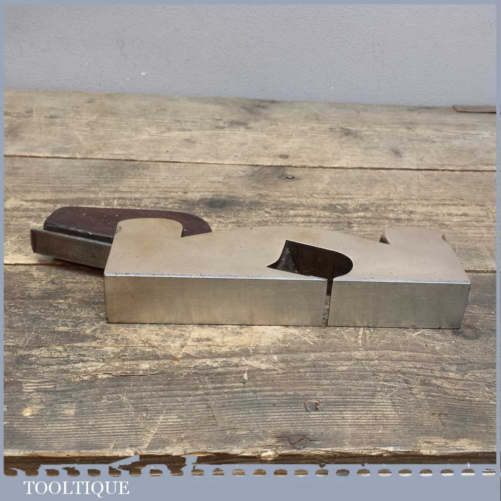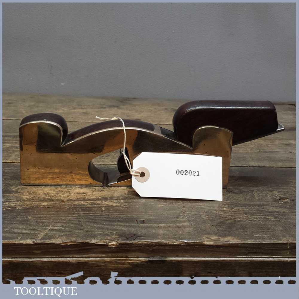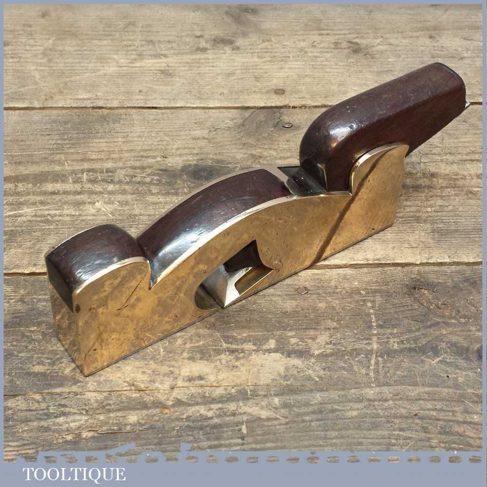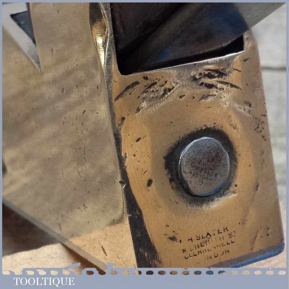 Antique H Slater brass & rosewood infill shoulder plane with sweated on steel sole and marked at the heel of the plane. It was probably made for Frosts of Norwich as it has a Frost iron. It’s unusual to find the Slater mark and evidence of Frost combined as they like so many other retailers often used to rebrand under their own name but it gives definitive proof that the business did indeed deal directly with H Slater the maker.