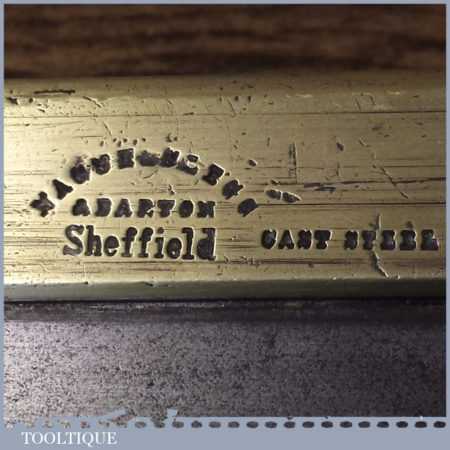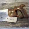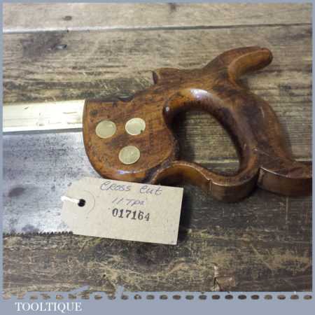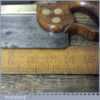The saw has been thoroughly cleaned including under the handle, jointed, resharpened and set by hand so that all the hard work of getting an old vintage saw right has been undertaken. We do this so that the next sharpening is easier and no more than a quick freshen up would be required. Those who are familiar with sharpening will know this is no small job and requires skill, effort and time to achieve good results.