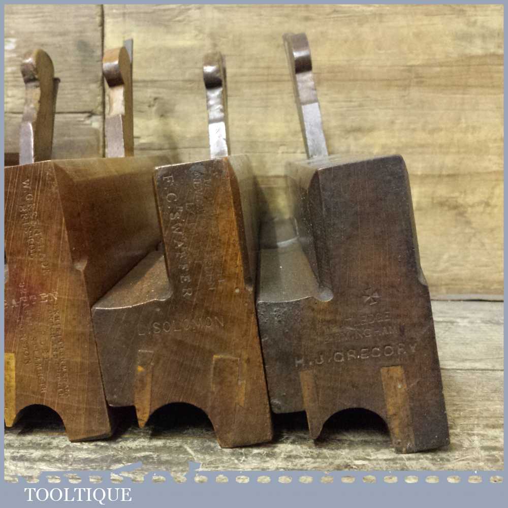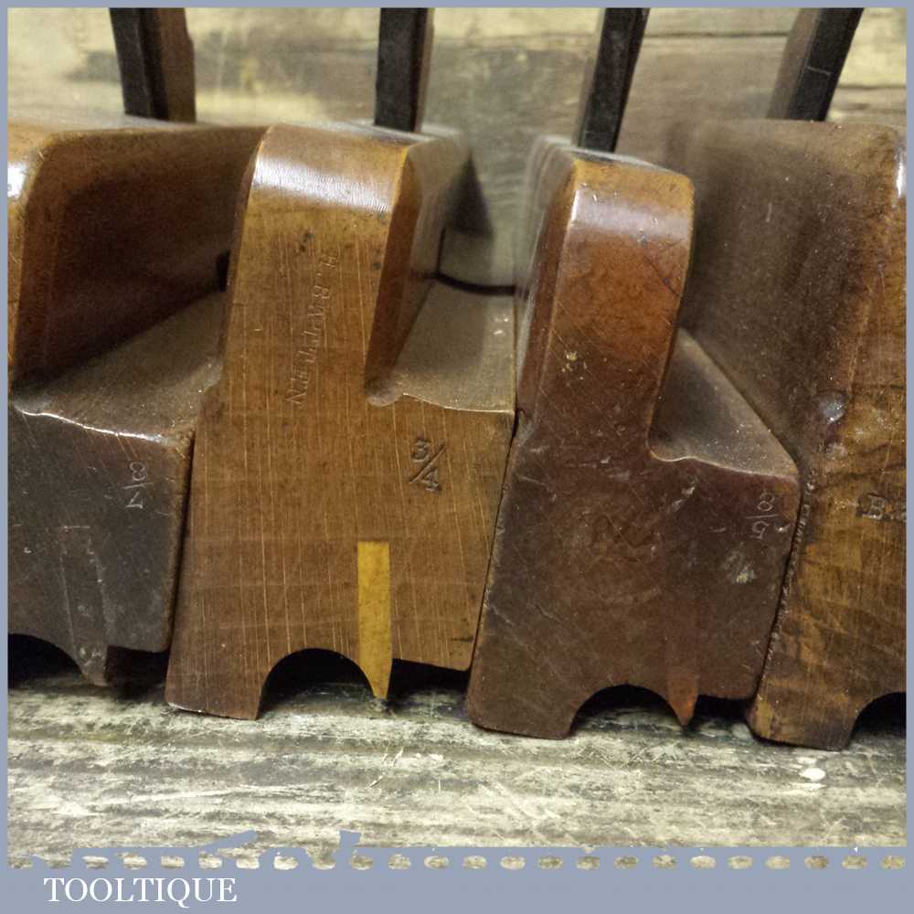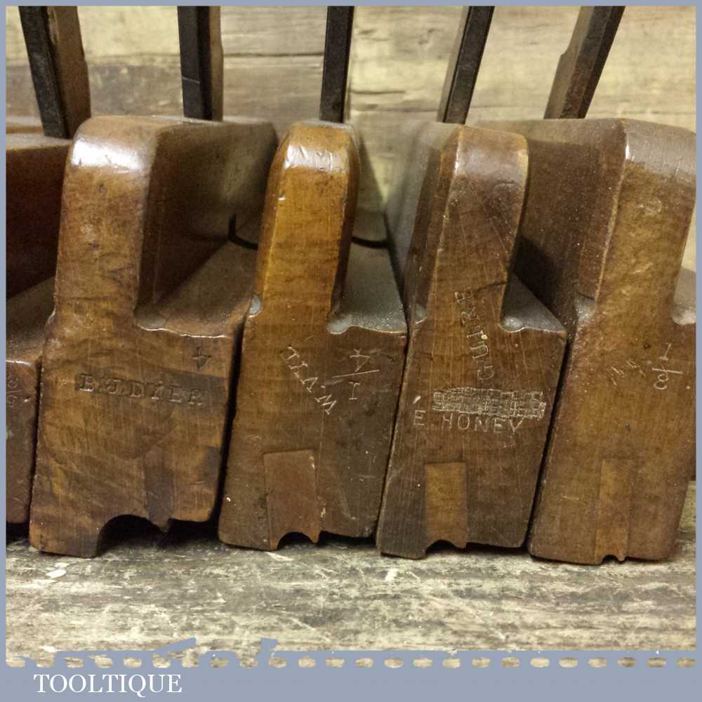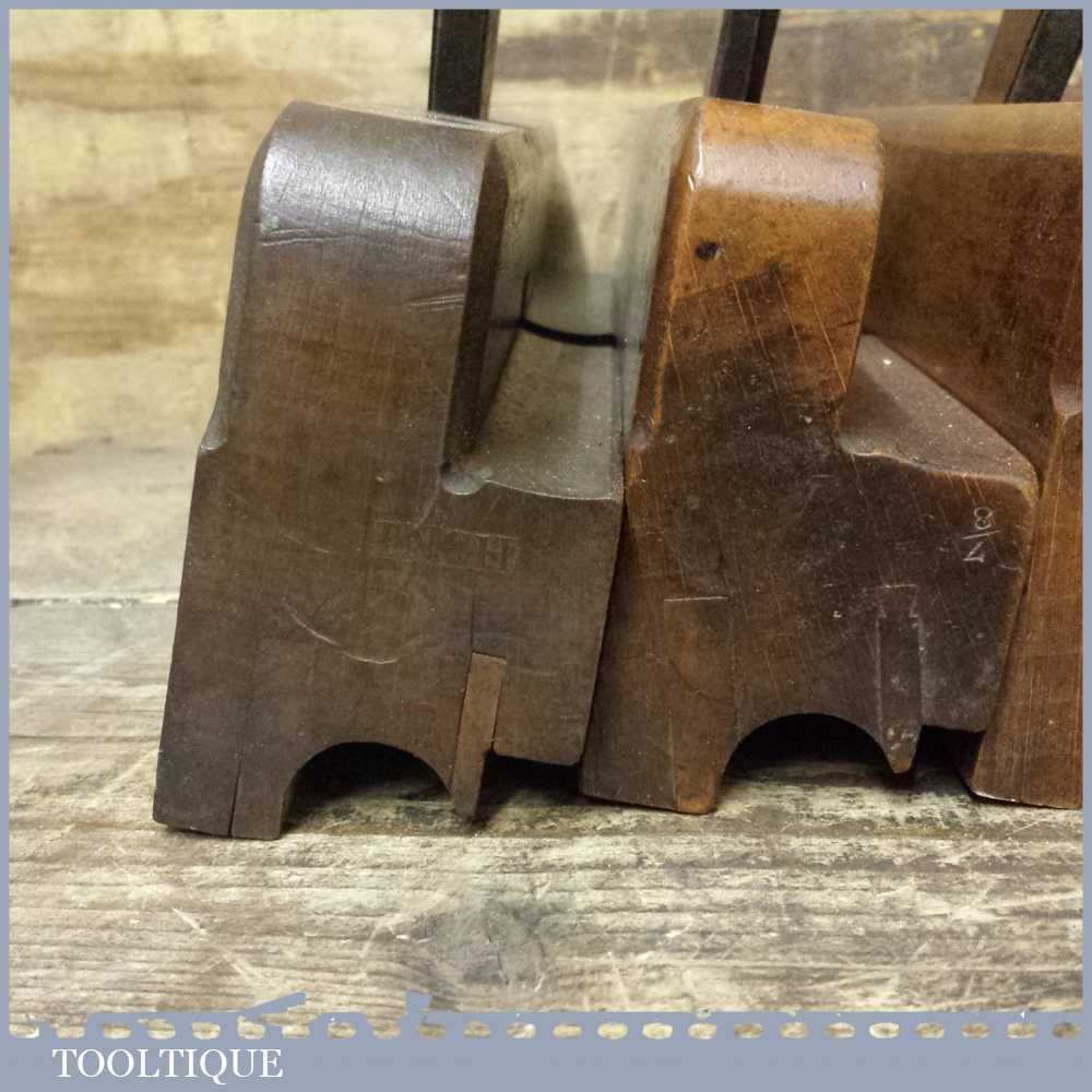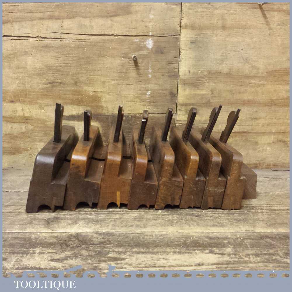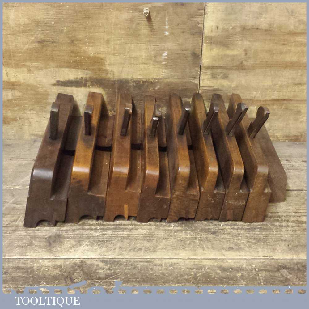 Antique half set (8 No:) of bead moulding planes 1/8” – 1” in good used condition. There is a mixture of makers although some names include Nurse, Moseley, Greenslade, crow and other 19th century makers. Size increments of 1/8” all the way up to 1”.