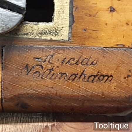 Antique Heilds of Nottingham carpenter’s 7 ½” beechwood compass plane with boxwood depth stop, in good used condition. Refined lapped radius sole, sharpened & fettled ready for use