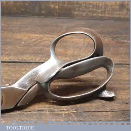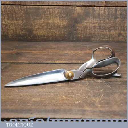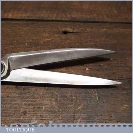 Antique sail maker’s, leatherworking or tailor’s 12” shears or scissors attributed to R. Heinisch, Newark, USA, in very good used condition. These scissors are nice and sharp and cut to the tip.