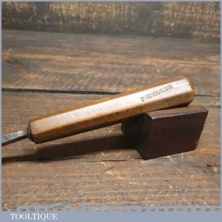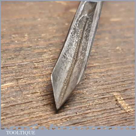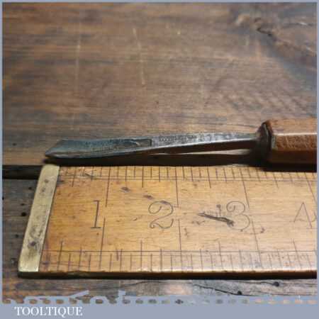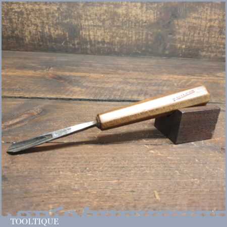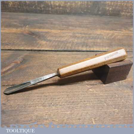 Antique Isaac Greaves (1825-1911) 5/16” straight wood carving “V” parting chisel with beechwood handle in good used condition, fully refurbished sharpened and honed ready for use