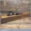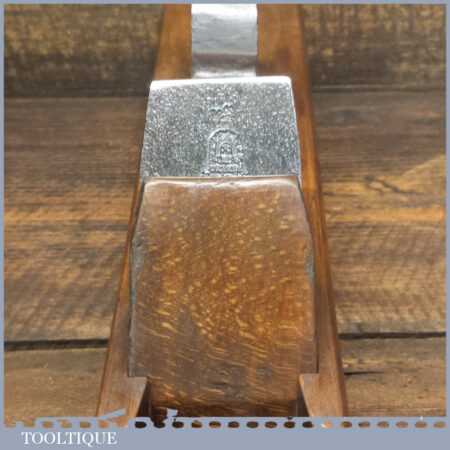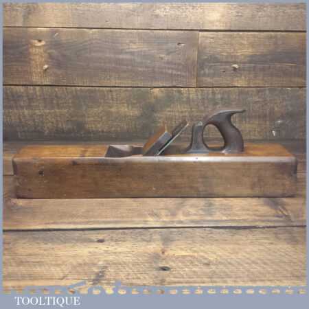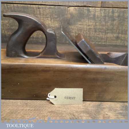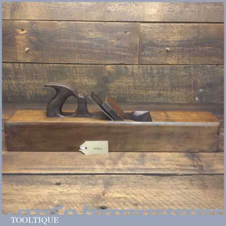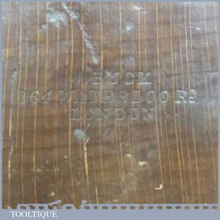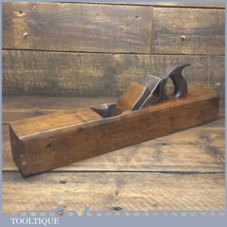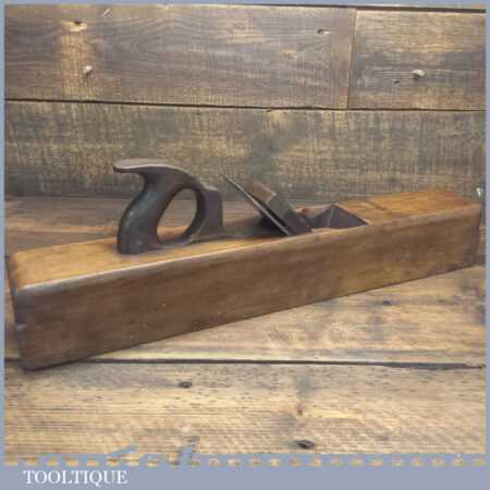 Antique J. Buck, 164 Waterloo Rd (1881-1910) carpenter’s 22” beechwood trying plane in good used condition. Lapped flat and sharpened ready for use. Note: Age crack to top of plane which has been resin filled and made solid.