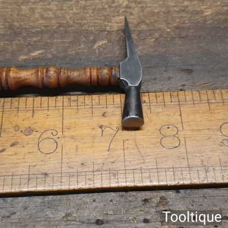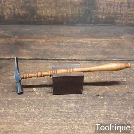 Antique jeweller’s cross pein hammer with decorative ornate hardwood handle, in good used condition.