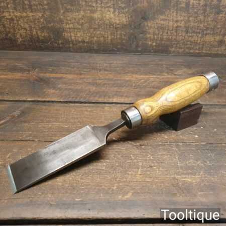 The chisel has been checked to ensure the tang is seated properly and the handle is solid and fit for use. All refurbished chisels are water cooled during the sharpening process to ensure the tempering is not affected.