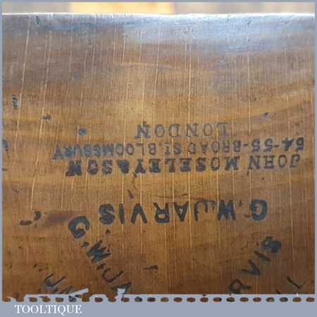 Antique John Moseley & Son carpenter’s 22” beechwood trying plane in good used condition. Lapped flat and sharpened ready for use.