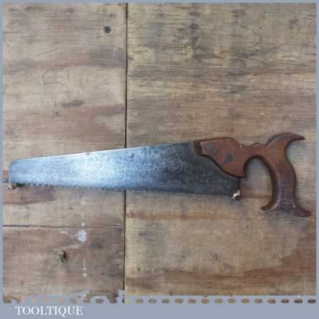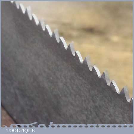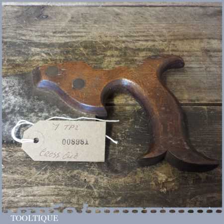 The saw has been thoroughly cleaned, jointed, resharpened and set by hand so that all the hard work of getting an old vintage saw right has been undertaken. We do this so that the next sharpening is easier and no more than a quick freshen up would be required. Those who are familiar with sharpening will know this is no small job and requires skill, effort and time to achieve good results.