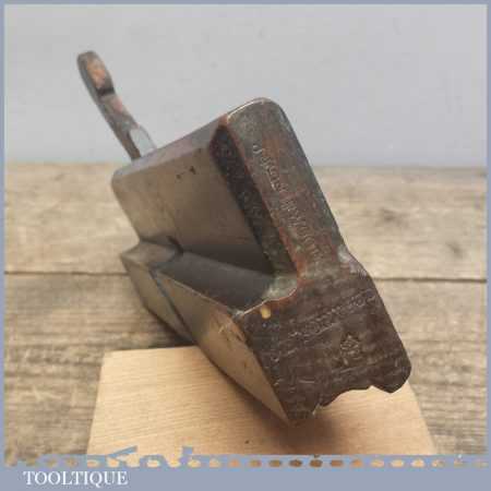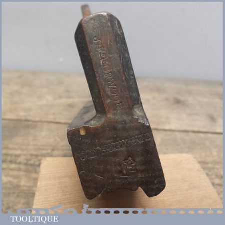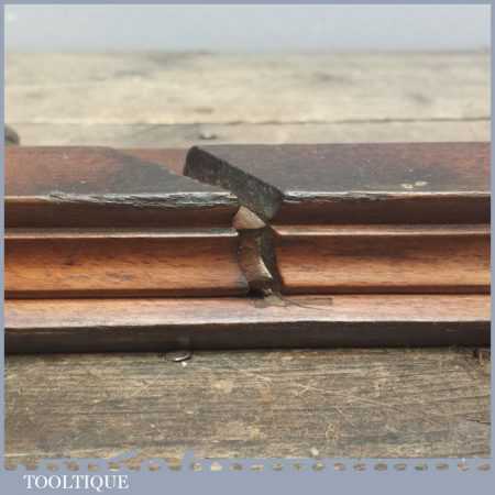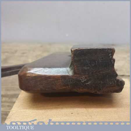 Antique late 18th early 19th-century Ovolo moulding plane, maker unknown as it has been over-stamped by the user and seems to be in good used condition. It measures 9 5/8” long and 1 5/16 widest point. There are a couple of wormholes but nothing serious. Note: Stamped 2/4 probably 1/2″.