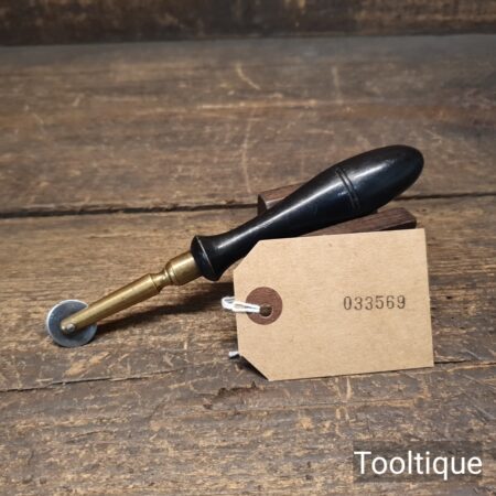 Antique Leatherworkers Cutting Wheel Tool with an Ebony Handle, sharpened ready for use and in good used condition.
