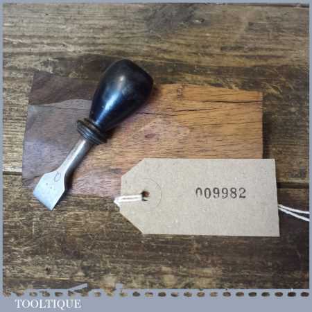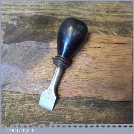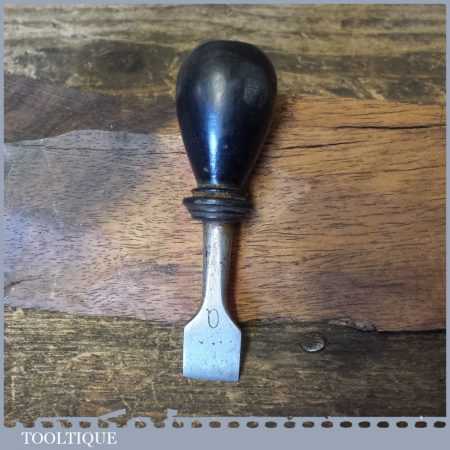 Antique leatherworking ½” button hole chisel with an ebony handle in good used condition. This is 3” in length and is a sweet little tool rarely seen.