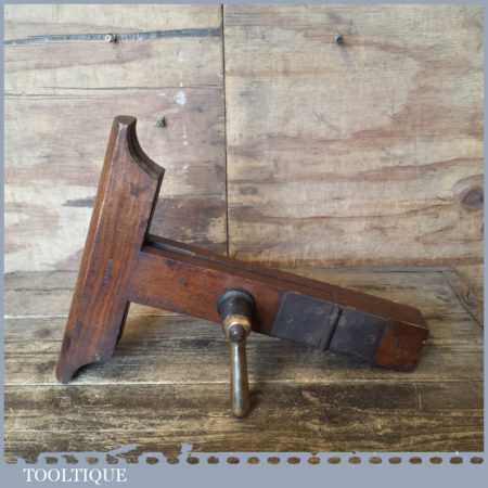 Antique mahogany saw vice with 11” jaws and nice brass tightening handle, in good used condition