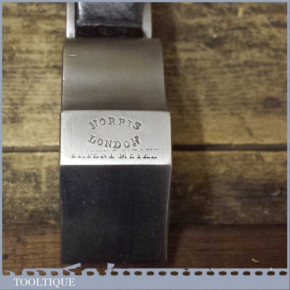 Antique Norris No: 25 Patent Metal bullnose type plane with original Norris Iron and in good used condition due to being kept in a cloth pouch. It’s a very nice original example with a rosewood wedge and worthy of any collection.