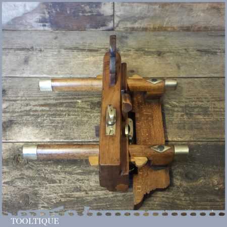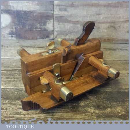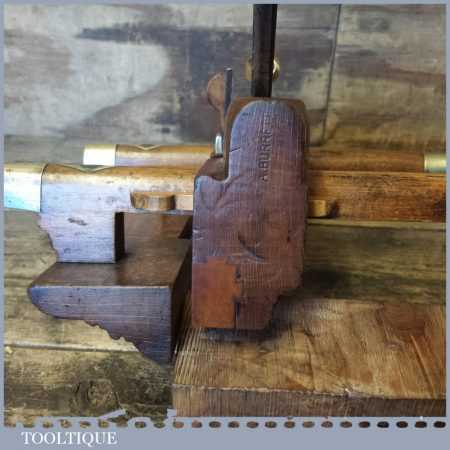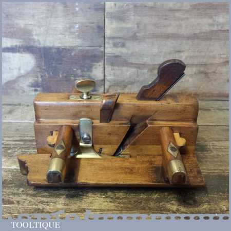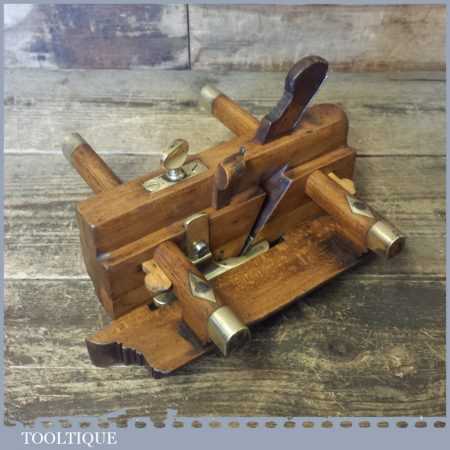 Antique Norwich made beechwood and brass skew bladed fillister plane with dovetailed boxwood insert, in good clean condition.