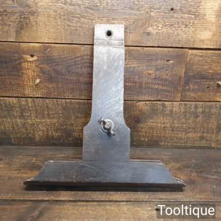 Antique oak screw clamp saw sharpening vice with 15″ jaws in good used condition