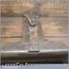 Antique Oak saw sharpening vice with cast iron threw and locking screw, this has a leather liner to grip the saws in good used condition. Note: Has been fitted with strengthening plate at some point but seems solid.