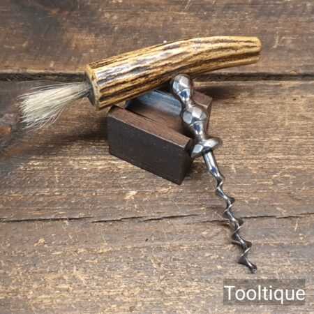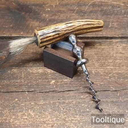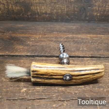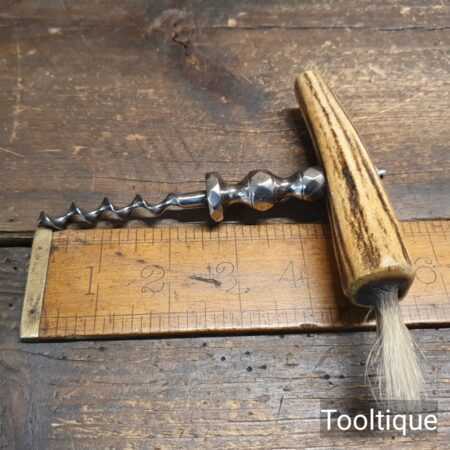 Antique ornate Corkscrew with a horn handle with natural Hair End Brush in a good used condition