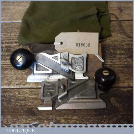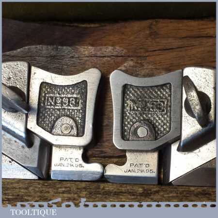 Antique pair of Stanley USA side rebate planes No’s: 98 & 99 PAT dated Jan 29 1895 complete with fences, in good used condition.