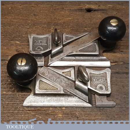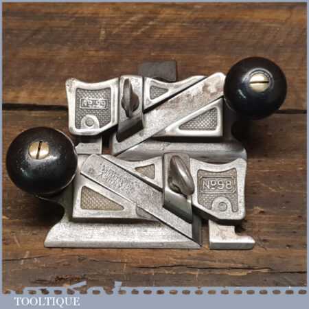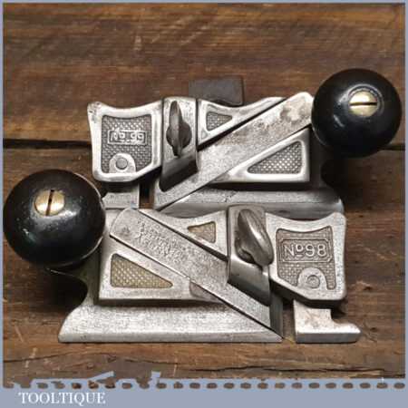 Antique pair of Stanley Rule & Level Co. USA side rebate planes No’s: 98 & 99 (Pat. dated 1895) complete with fences, original irons and rosewood handles in good used condition.