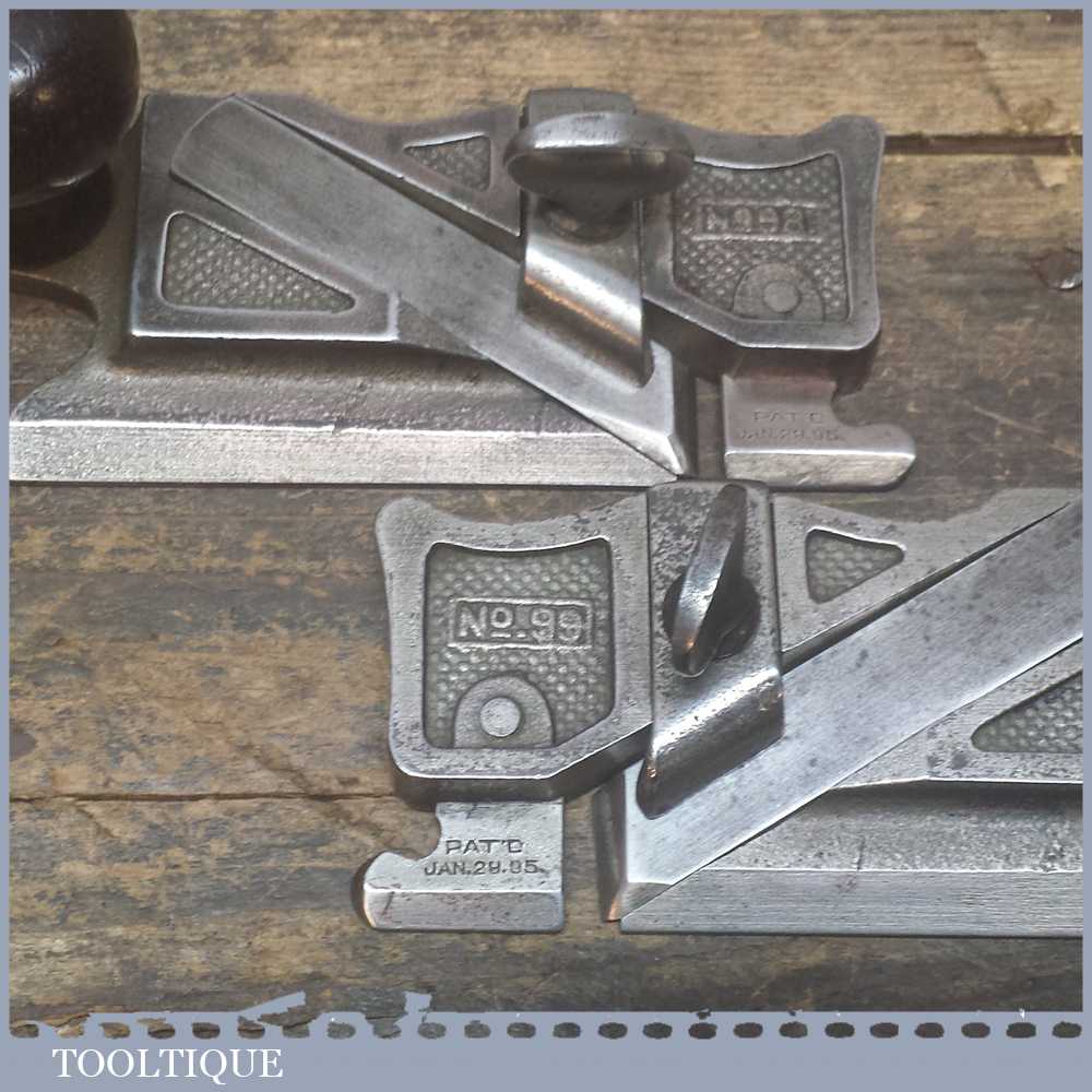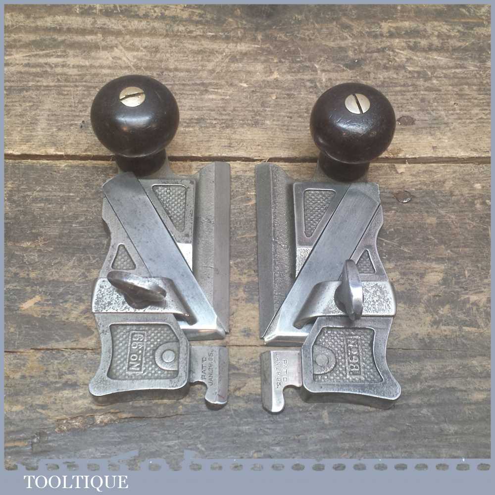Antique pair of Stanley side rebate planes No’s: 98 & 99 Patent dated Jan 29 1895 in good used condition bar some wear on the nickel coating.