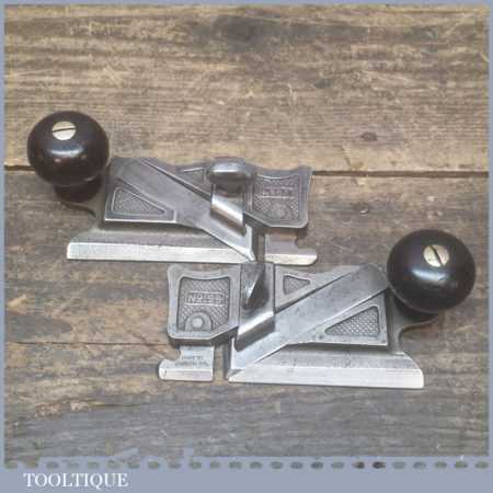 Antique pair of Stanley side rebate planes No’s: 98 & 99 Patent dated Jan 29 1895 in good used condition bar some wear on the nickel coating.