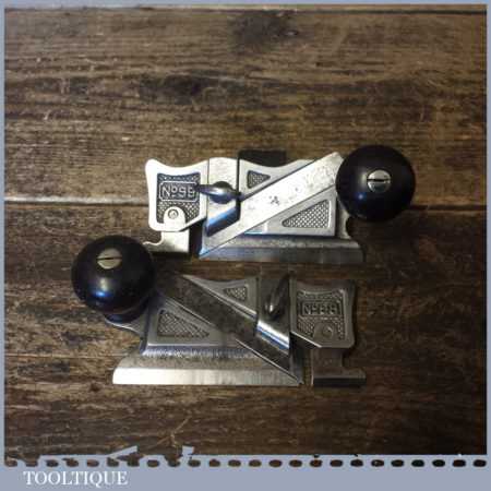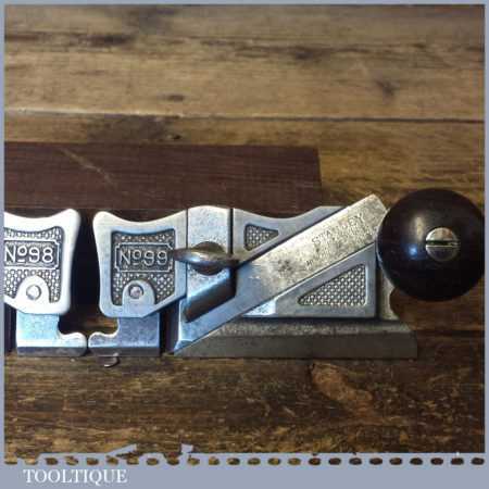 Antique pair of Stanley USA side rebate planes No’s: 98 & 99 PAT dated Jan 29 1895 complete with fences, in good used condition.