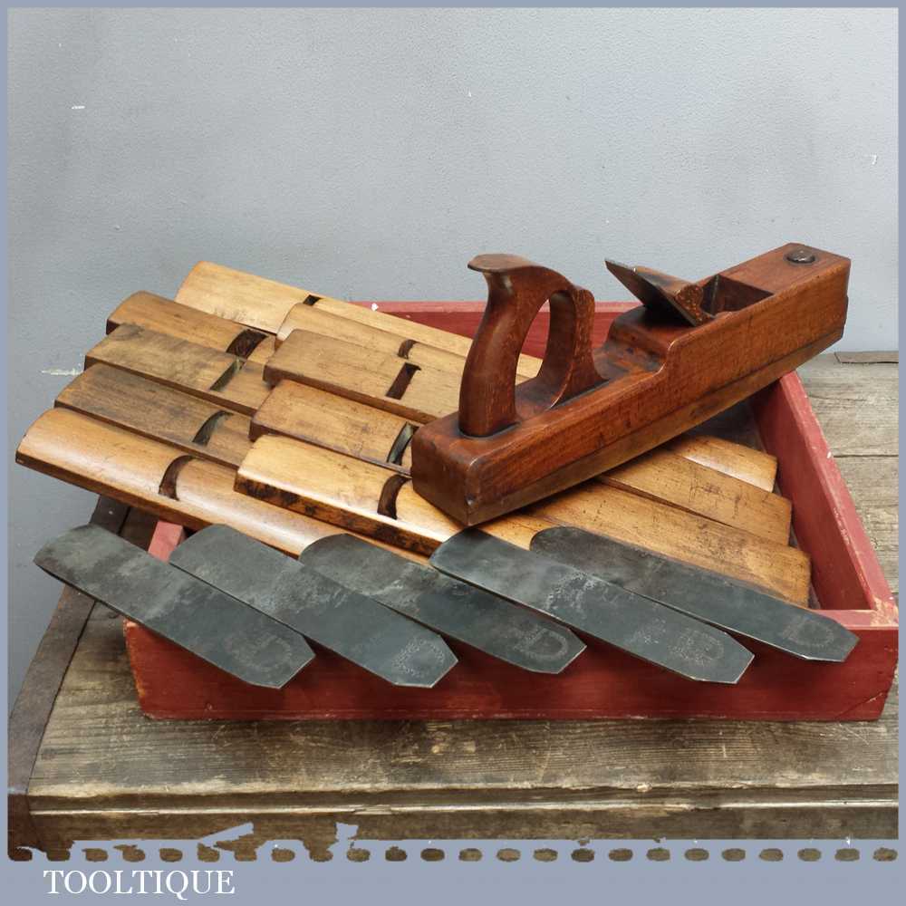 Antique Pattern makers jack plane with interchangeable soles and a selection of irons to suit. Someone went to a lot of trouble and time to construct this lovely old tool which would grace any specialist tool. Great value item when you consider the prices of irons would be if bought individually.