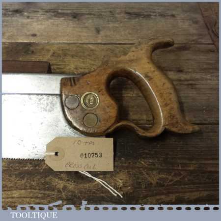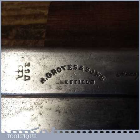 Antique R. Groves & Sons 14” steel back tenon saw with 10 tpi, fully refurbished and sharpened cross cut ready for use. Note: Good old repair (not structural) to handle, barely noticeable.