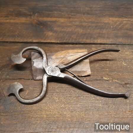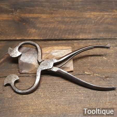 Antique R. Timmins & Sons box jointed sugar nippers in good used condition. Note: Locking clasp broken off.