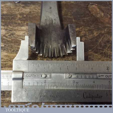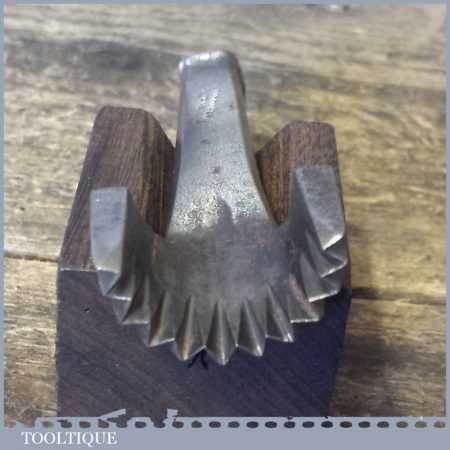 Antique R. Timmins & Sons upholsterer’s half round pinking iron in good used condition.