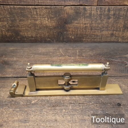 Antique Rabone Chesterman London 1920 Adjustable Brass Spirit Level in good used condition.