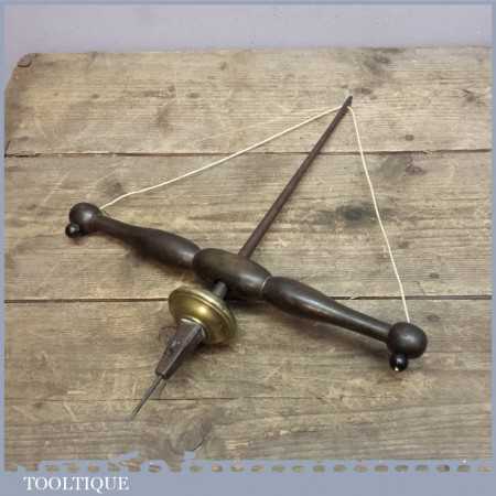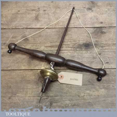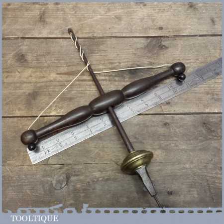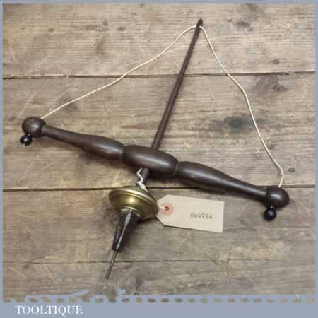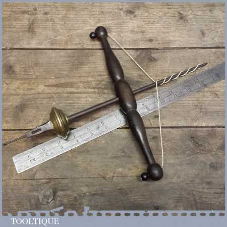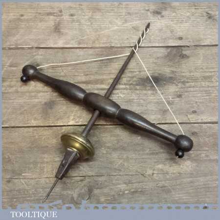 Rare early pump bow drill weighted with brass fly wheel. These drills were popular with jewellery makers as they could be used with one hand and are hard to find especially when they are early like this example.