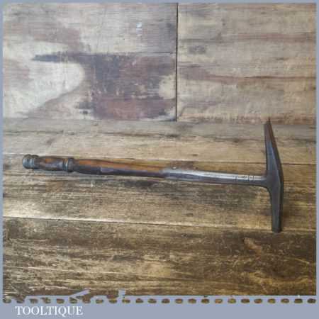 Antique saddlers leatherworking strapped tack hammer with decorative wooden handle, in good used condition.