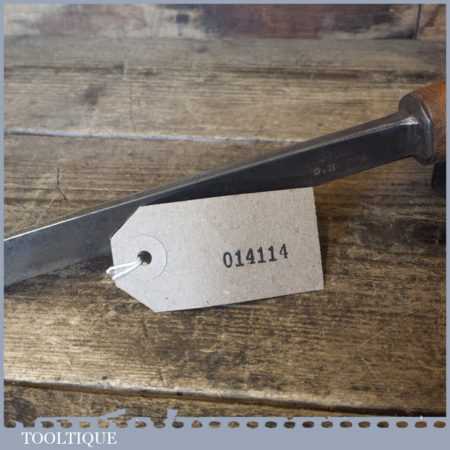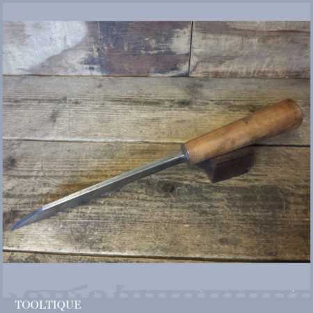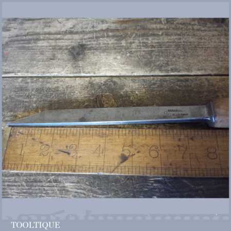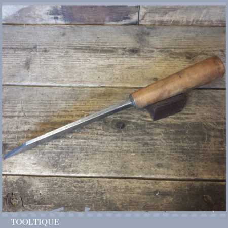 The chisel has been checked to ensure the tang is seated properly and the handle is solid and fit for use. All refurbished chisels are water cooled during the sharpening process to ensure the tempering is not affected. These old cast steel chisels are hand forged and far superior in quality because of the high carbon steel that was used which produces a keener edge, this was also generally used throughout the full length.