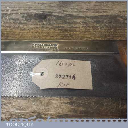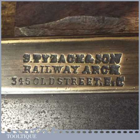 Scarce Antique Samuel Tyzack & Son 9” brass back dovetail saw with 16 tpi and a pistol grip handle, fully refurbished and sharpened as a rip ready for use. Stamped ‘Silver Steel’ and the address Railway Arch, 345 Old Street. E.C. dating it to 1876.