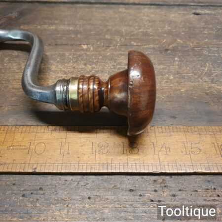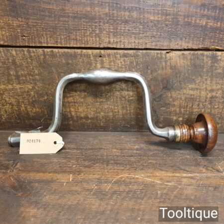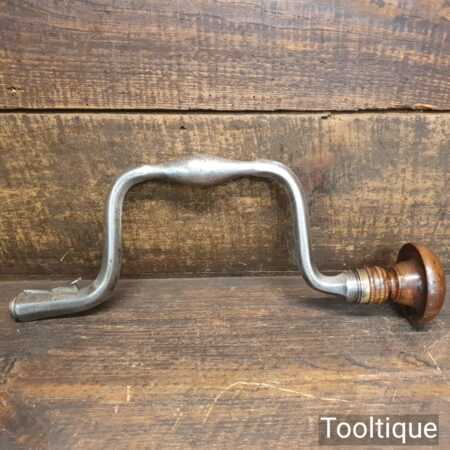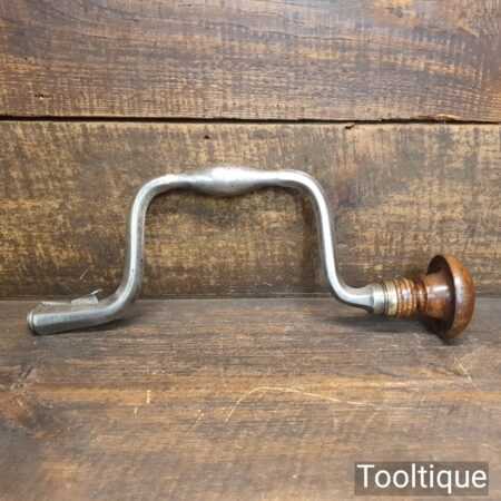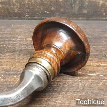 Antique Scotch brace with lignum Vitae head in good used condition and the locking mechanism works fine. Note: Head looks to be solid but does have some age cracking common with Lignum that have been filled.