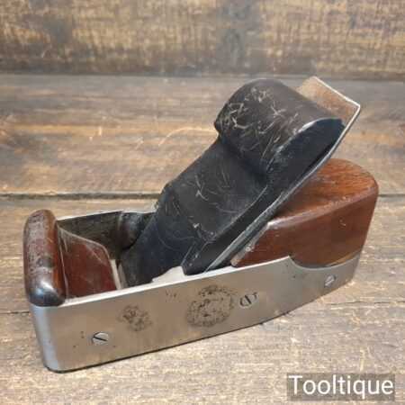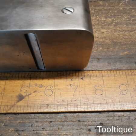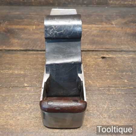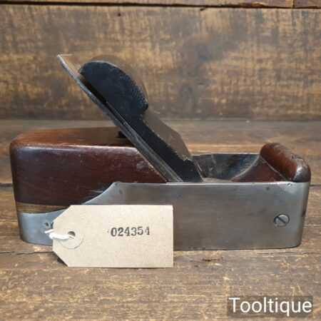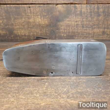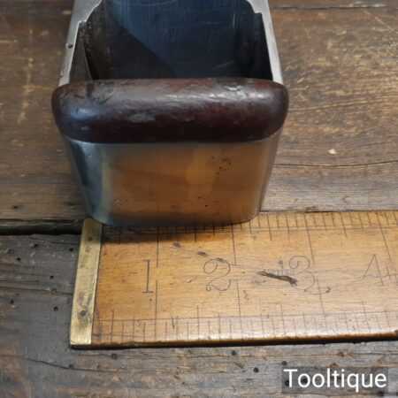 Antique Scottish pattern 7 ½” cast steel smoothing plane with rosewood infill and ebony wedge, in good used condition ready for use. Note: This is a foundry cast plane that had obvious repairs when it was made with all its blow-out holes and front repair. However, it’s now properly flat and works well now it’s been fettled in. Often these planes are overlooked due to the work involved to get them working right but if you can forgive it long enough until you to use it, I’m sure it will serve someone really well for what isn’t a big price tag