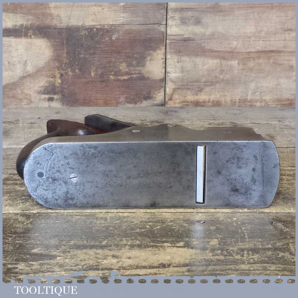 Antique Scottish smoothing plane with rosewood infill with inlaid brass in the handle probably done to hide a fix on the handle as there is a sign inside the handle of an old repair. Its’ quite solid and certainly adds to the plane’s history. It has a Aaron Hildick parallel iron which is sharp and the plane is quite useable.
