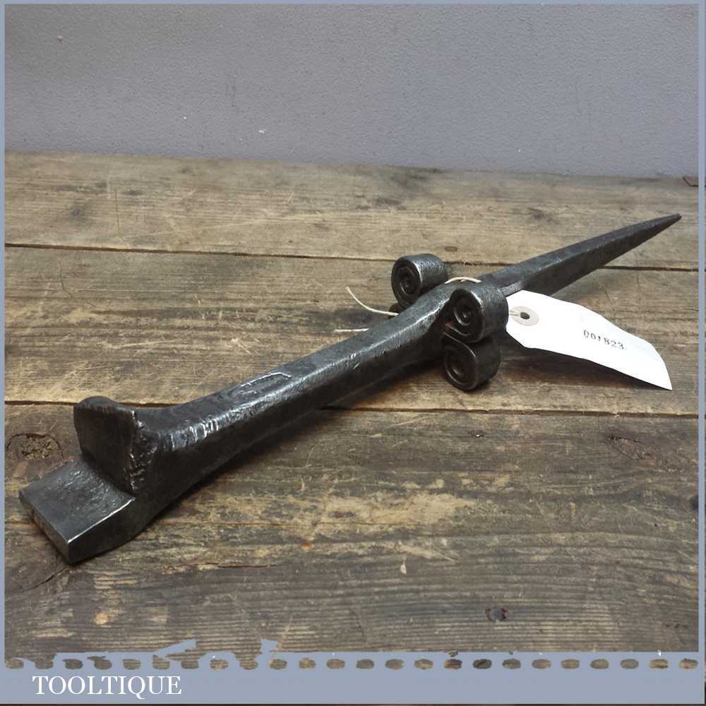 Antique Scythe Anvil or stake used for preening and edge to them out in the field. This example has a stamp into its body but is hard to read although the word Lasbros is clear which could be the region it was made in which case it could possibly be French in origin. It measures 15 ½ inches in length.