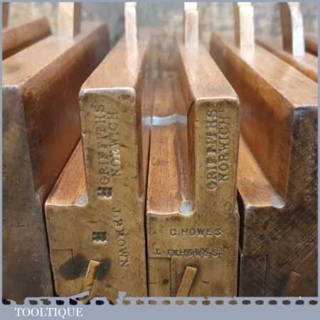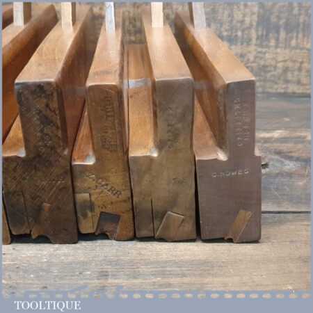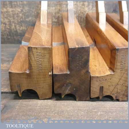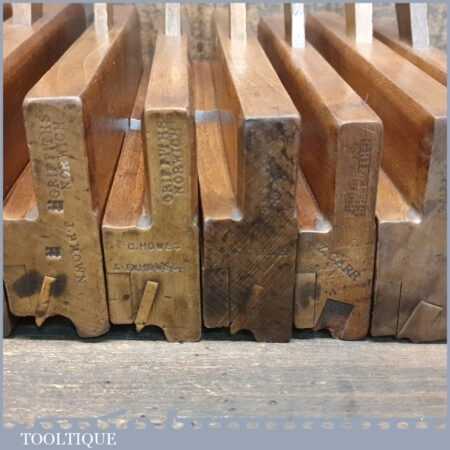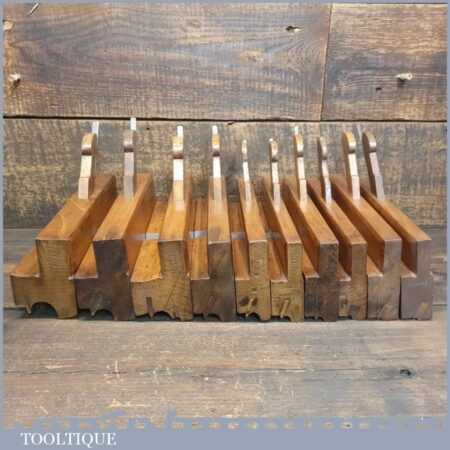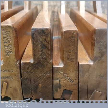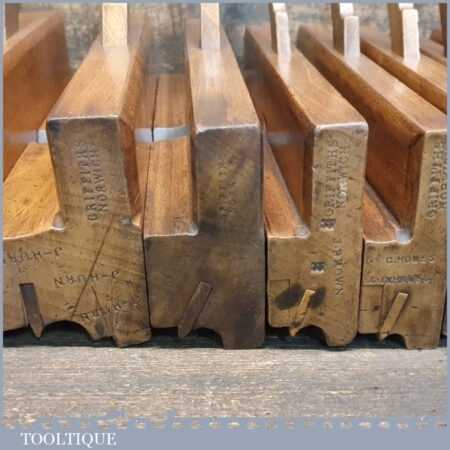 Antique set of 10 No: Griffiths of Norwich beading beechwood moulding planes with boxwood inserts, in good used condition
