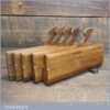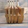 Antique set of 5 No: King & Peach, Hull (1843-1864) skew round beechwood moulding planes (No’s: 2, 4, 6, 8 & 12) in good used condition. This came from an old pattern makers kit who often had part sets that obviously didn’t include hollows