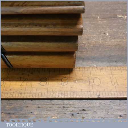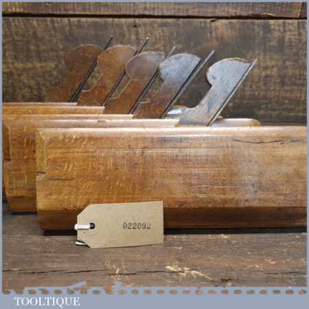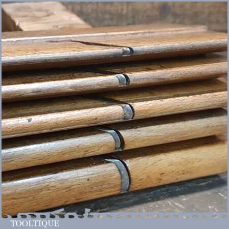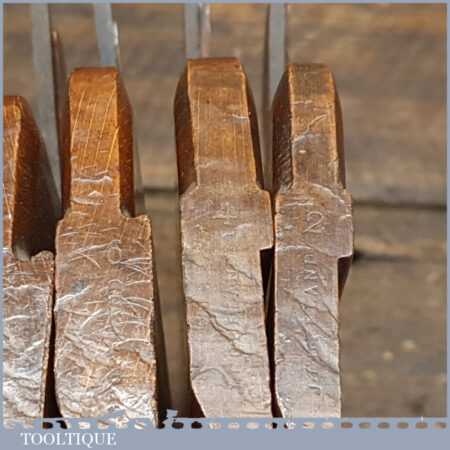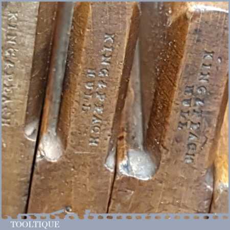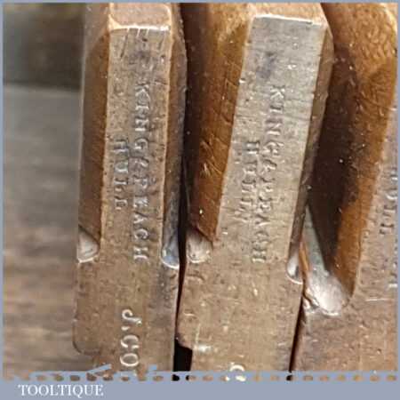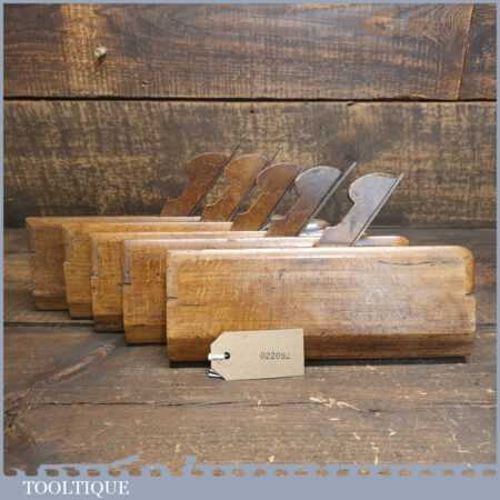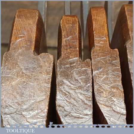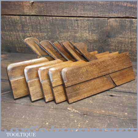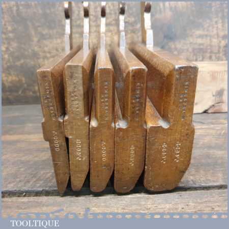 Antique set of 5 No: King & Peach, Hull (1843-1864) skew round beechwood moulding planes (No’s: 2, 4, 6, 8 & 12) in good used condition. This came from an old pattern makers kit who often had part sets that obviously didn’t include hollows
