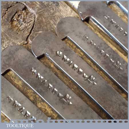 Antique set of 8 No: Ward & Payne plough plane irons in good used condition.