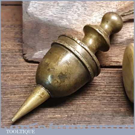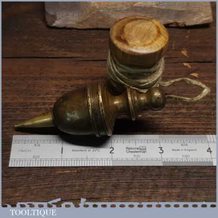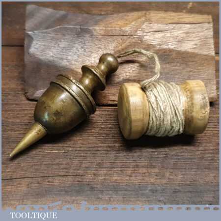 Antique solid brass plumb bob complete with wooden spool and string, in good used condition. This is very nice and certainly unusual in its design.