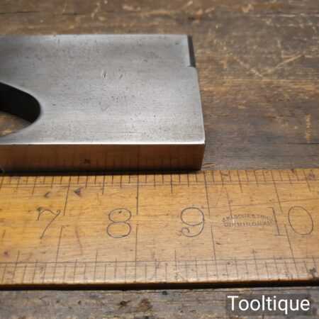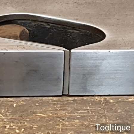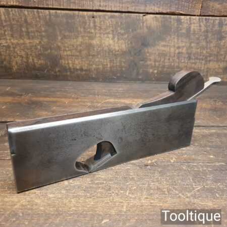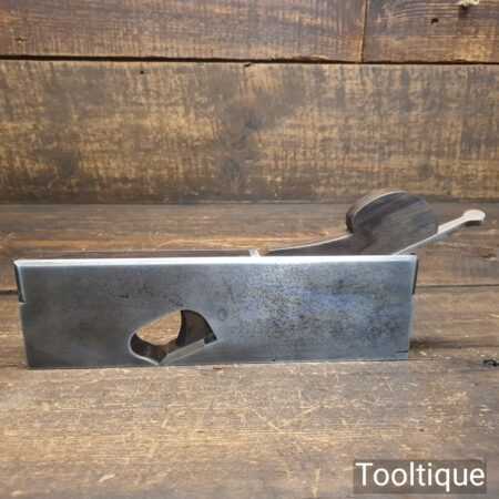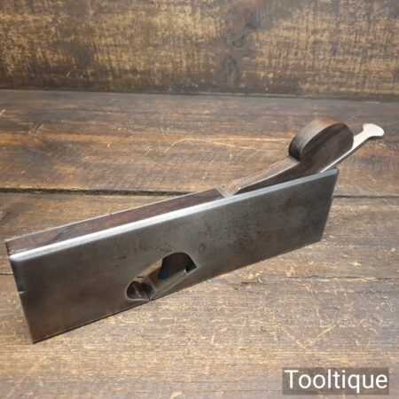Antique Spiers dovetailed steel rabbet plane with rosewood infill and in good used condition. Note: Not Marked Speirs but has the ‘steel’ stamped on the front which is a known identifier. Also looks to have had a replacement wedge and iron, it a good user plane.