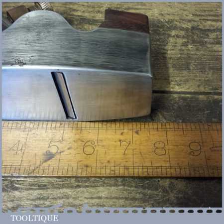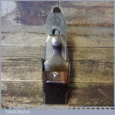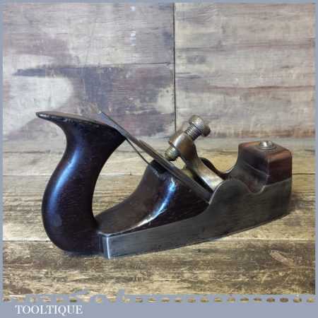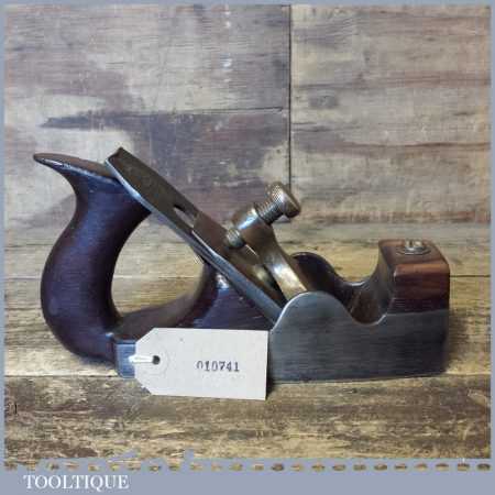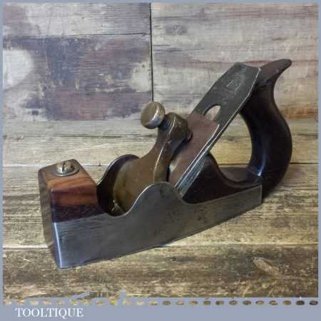 Antique Spiers of Ayr Scottish dovetailed smoothing plane with rosewood infill and Sorby iron, some marks to the body and sole (see images) but otherwise in good overall used condition. Note: the handle and front knob have been repaired, the tote has a stabilising brass strap and the front knob has had a brass strike button fitted for additional strength. Works well and has been lapped flat for use.