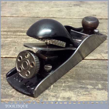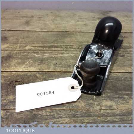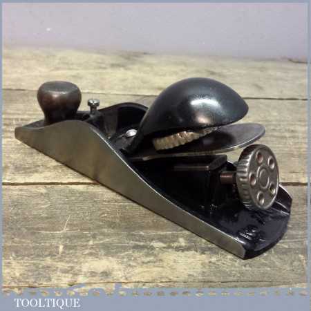 Antique Stanley No: 140 skew mouth block plane refurbished ready to use. This was covered in Yellow paint when I got it and because of our thorough refurbishment picked up the lever cap had been repaired. It has been repaired well and replacements lever caps can be found however for a user this has now become more affordable.