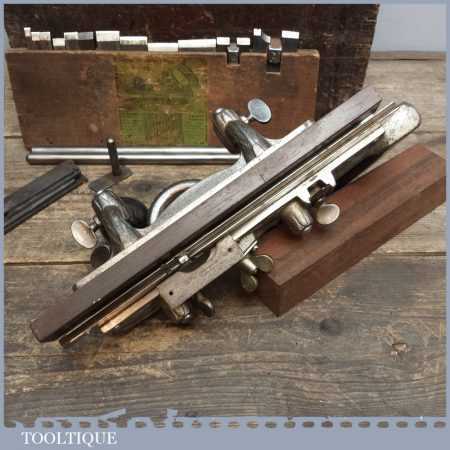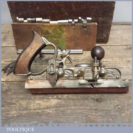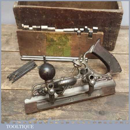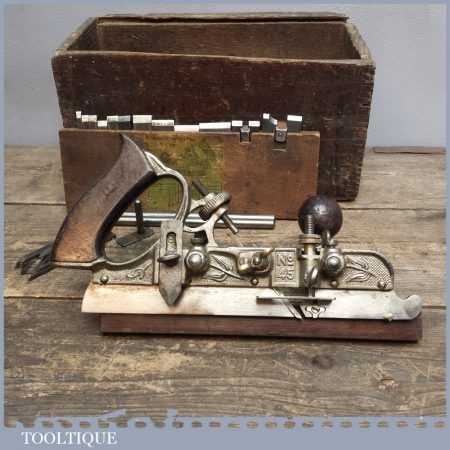 Antique Stanley No: 45 B casting Combination Plane in good used condition and relatively complete apart from odd irons and the iron box, also lid missing to main box. See Images.